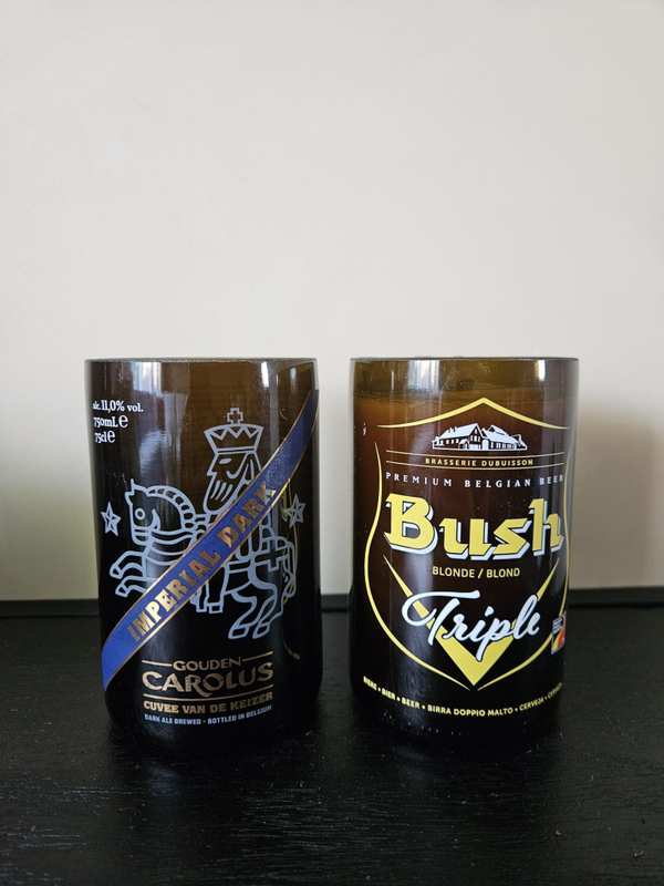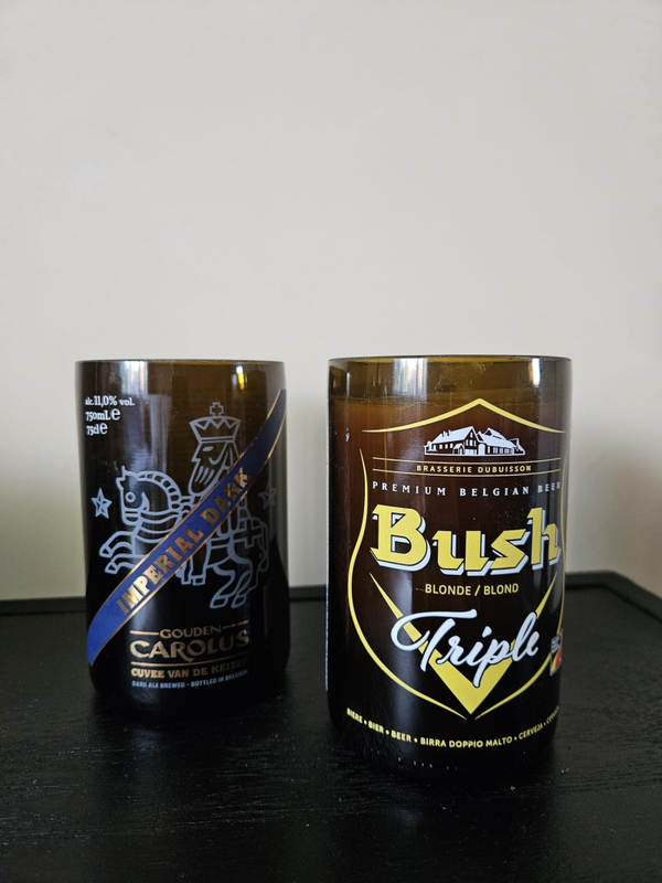 Unieke handgemaakte houders van gerecyclede drankflessen. Elke fles is zorgvuldig gesneden, geschuurd en omgetoverd tot een stoere en duurzame eyecatcher. Perfect als kaarsenhouder, potje voor kleine plantjes of gewoon als decoratie in je huis.
