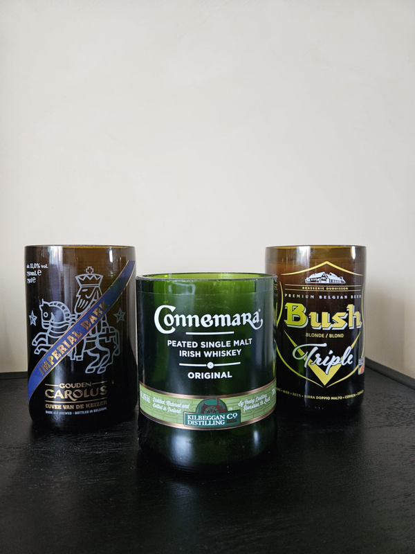 Unieke handgemaakte houders van gerecyclede drankflessen. Elke fles is zorgvuldig gesneden, geschuurd en omgetoverd tot een stoere en duurzame eyecatcher. Perfect als kaarsenhouder, potje voor kleine plantjes of gewoon als decoratie in je huis.